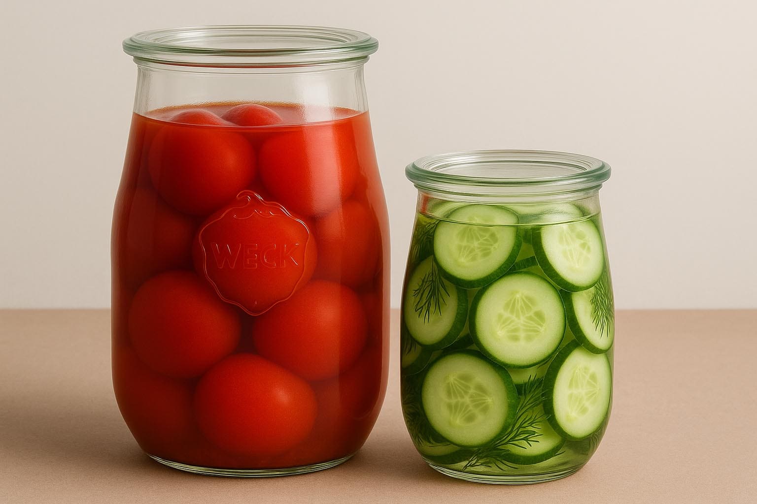 WECK apvalūs kraštai yra esminė tradicinių konservavimo stiklainių savybė. Jie leidžia paprastai ir patikimai uždaryti stiklainį naudojant stiklo dangtelį, guminį žiedą ir charakteringas konservavimo spaustukes. Vienoda, apvali krašto forma užtikrina optimalų sandarumą konservavimo metu ir lengvą valymą. Mūsų asortimente rasite tinkamus WECK dangtelius ir guminius žiedus įvairiems stiklainiams ir paskirtims.