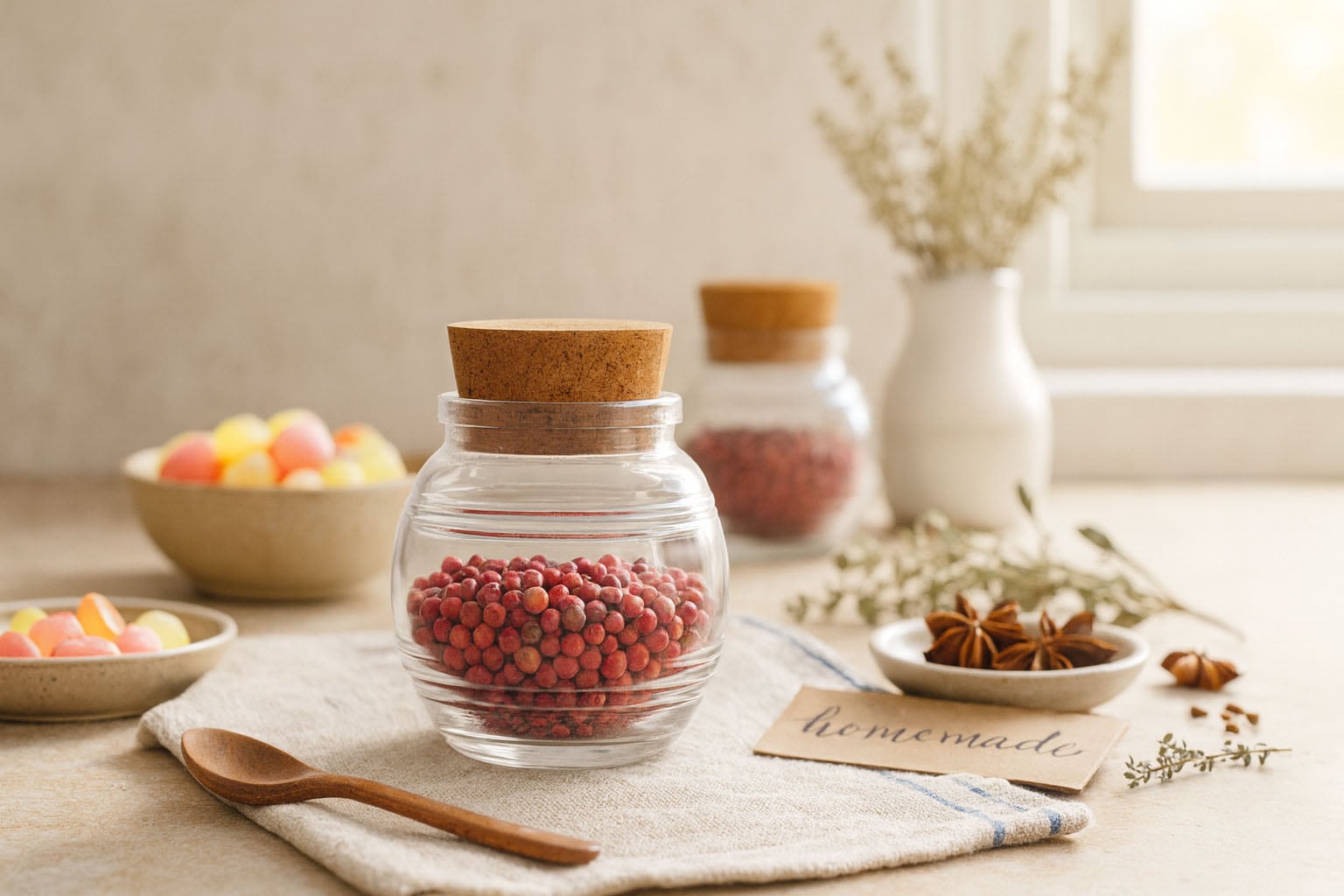 „Jule“ serija jungia estetinį elegantiškumą su praktiškumu ir siūlo stilingą sprendimą prieskonių, saldainių ir kitų gardžių skanėstų laikymui. Kamuolio formos kamštinis indas išsiskiria švelniai apvalinta forma ir charakteringu dryžuotu reljefu, kuris suteikia ypatingą pojūtį ir nostalgišką žavesį. Apvali pamatinė dalis užtikrina harmoningą vaizdą, o kamštinis dangtelis – saugų ir natūralų sandarumą. Jule yra ne tik praktiškas indas laikymui, bet ir dekoratyvus akcentas, kuris puošia bet kurią virtuvę ar stalą.