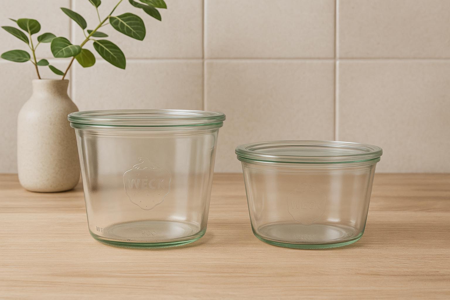 WECK apvalūs kraštai yra esminė tradicinių konservavimo stiklainių savybė. Jie leidžia paprastai ir patikimai uždaryti stiklainį naudojant stiklo dangtelį, guminį žiedą ir charakteringas konservavimo spaustukes. Vienoda, apvali krašto forma užtikrina optimalų sandarumą konservavimo metu ir lengvą valymą. Mūsų asortimente rasite tinkamus WECK dangtelius ir guminius žiedus įvairiems stiklainiams ir paskirtims.