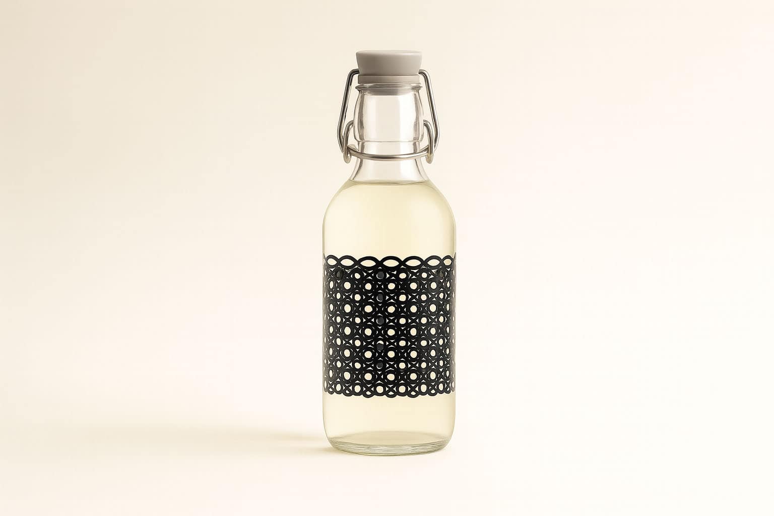 Bormioli Rocco 500 ml stiklinis butelis „Emilia“, motyvas: Circola nero, anga: užsegamas užraktas