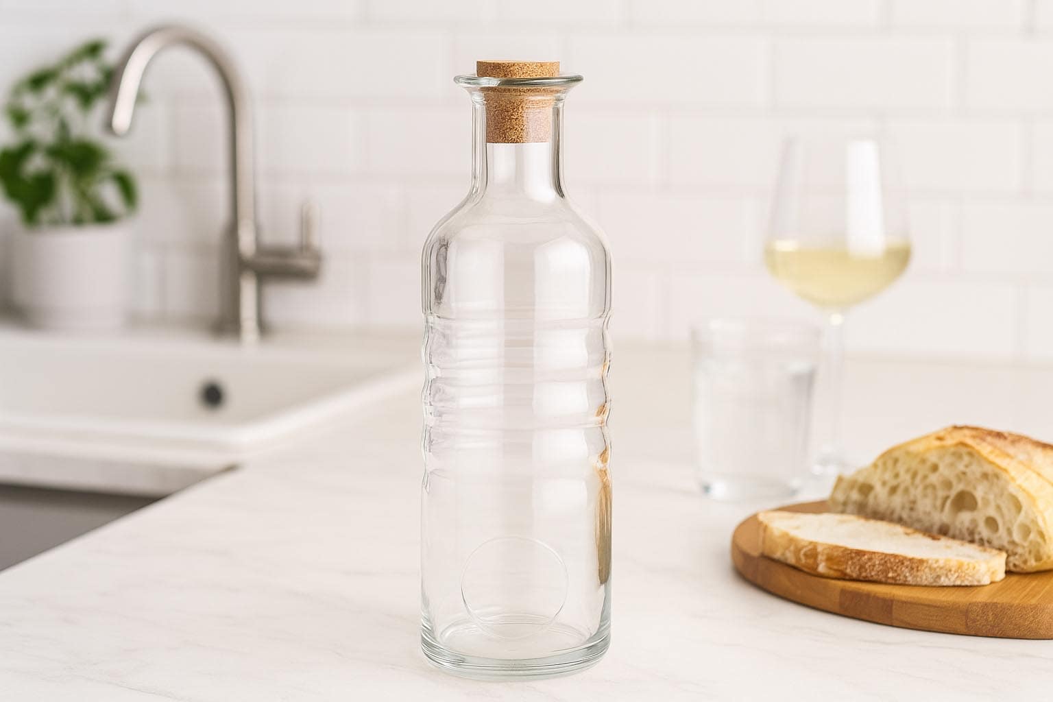 Su 750 ml talpa ir apvalia forma butelis žavi elegantiška išvaizda bei praktišku naudojimu. Kamštinė butelio anga užtikrina saugų ir stilingą sandarumą, kuris optimaliai saugo turinį.