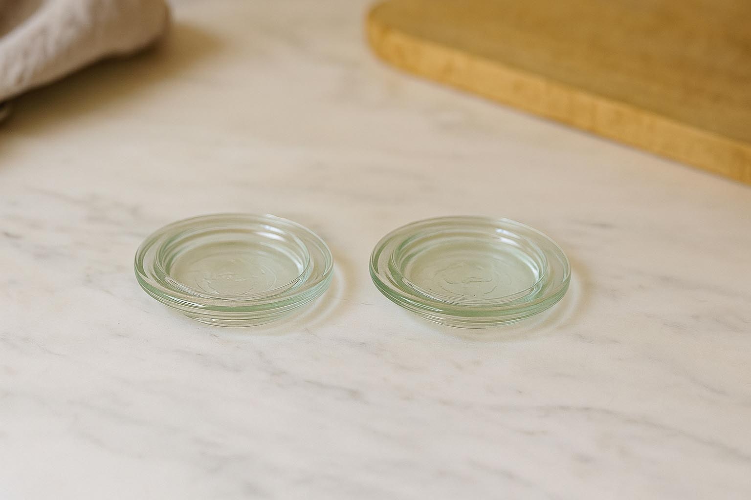 Pasitikėkite patikrinta WECK kokybe ir optimizuokite savo atsargų laikymą su ilgaamžiais, universaliais stiklo dangteliais apvaliems stiklainiams!